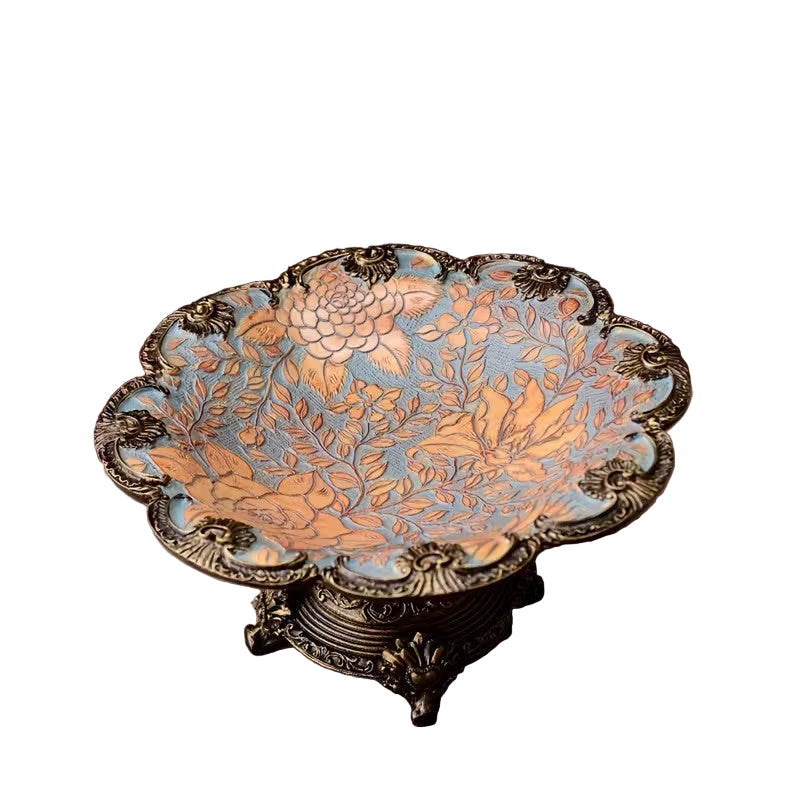 - Styl: Jednolity element łączący podniesioną dekoracyjną tacę z podstawą.